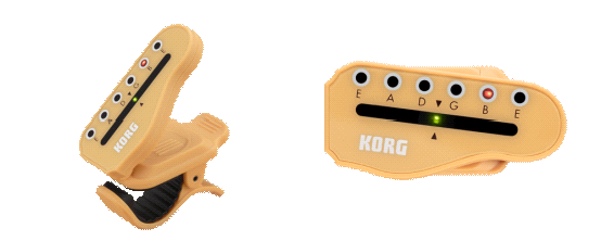 專為吉他、貝司和四弦琴而設的夾子式調音表。如琴頭設計的外觀,專為初學者而設的吉他/貝司/四弦琴調音器。
