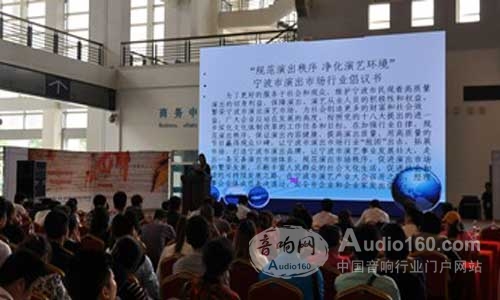 9月26日上午由寧波文廣局牽頭,寧波市文化市場演藝行業分會主辦召開了2013年寧波演藝產業大會,邀請了中國演出行業協會朱克寧副秘書長做專題演講,下午邀請浙江大豐舞臺設計院院長演講談論舞臺機械新科技在演藝中應用的課題,會議期間組織了200余多的專業觀眾參與本次大會,出席的嘉賓有:浙江省文化廳巡視員、浙江省演出業協會會長、中國演出家協會常務理事齊有為、寧波市文化廣電新聞出版局陳佳強局長、孫玉強副局長、李忠浩副局長、中國電子元件行業協會黃文藝副秘書長、寧波電子行業協會任奉波秘書長、浙江省演出業協會中國演出家協會常務理事呂龍華常務副秘書長、寧波江東區文廣局局長王昱局長等領導。