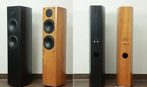 從正面觀察喇叭的外型設計中規中矩,不走花俏路線,表面使用原木貼皮質感很好。從側面觀察V-6000會發現,原來側邊箱體采圓弧設計,整個箱體是前面較寬然后再向后收縮,讓喇叭箱體符合無平行面的設計原理,這是許多Hi End喇叭廠的慣用手法,目的是消除箱體內部平行面,借以降低箱體內部駐波對聲音干擾的問題。喇叭底部使用黃銅車制的可調整式尖錐,遇上地面不平整的時候,這種可調整式的角錐設計立刻就能發揮功效。