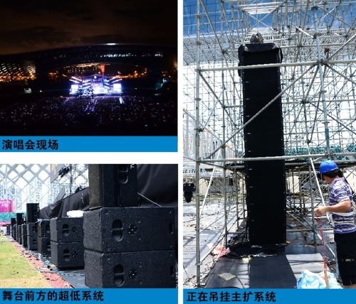 在演唱會(huì)開始前六天搭建舞臺(tái)對(duì)于北京海照公司來說是一個(gè)非常好的消息,因?yàn)檫@樣才能精益求精。王先生說:“我從4年前投資了一套TW AUDiO音響系統(tǒng),是中國最早的TW AUDiO用戶,這在當(dāng)時(shí)的中國使用頂級(jí)音響系統(tǒng)的人并不多,但我非常喜歡TW AUDiO的聲音,時(shí)間證明我的選擇是對(duì)的。”此時(shí)中國首套VERA36系統(tǒng)已經(jīng)空運(yùn)到國內(nèi),并且直接被運(yùn)到深圳灣體育場,配合北京海照的是中國代理商——廣州銳聲。技術(shù)工程師Terri Chen說:“我們?cè)趦芍芮澳玫搅梭w育場的圖紙,并和工廠商討擴(kuò)聲方案,TW AUDiO的系統(tǒng)搭建很簡單,我們能夠提前讓擴(kuò)聲系統(tǒng)準(zhǔn)備就緒,因此我們能夠?qū)W⒂谖枧_(tái)和樂隊(duì)演練,無須擔(dān)心在擴(kuò)聲上出錯(cuò)。”TW AUDiO工廠對(duì)這個(gè)演唱會(huì)也非常重視,派出了系統(tǒng)工程師Augustine Edward保障演出的萬無一失。