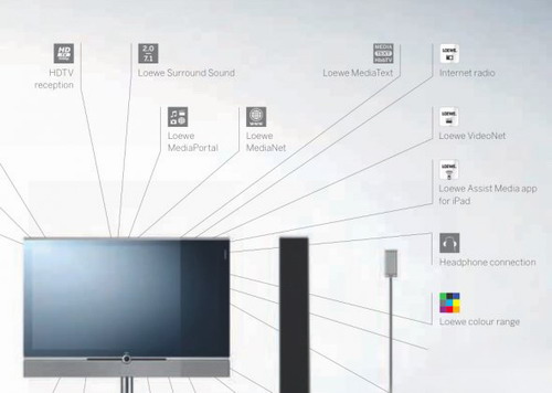 Loewe 公司產品技術參數一,有3D藍光播放器、低功耗顯示技術,以及兼容蘋果產品。