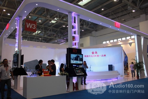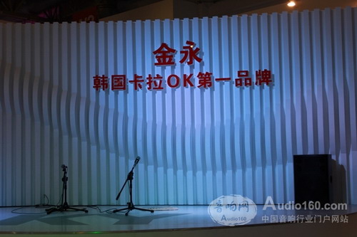 展會期間,金永打出了韓國卡拉OK第一品牌的標語,整個展位以簡潔、大氣為主,展示的產品并不多。在產品展示方面除了部分以靜態形式呈現外,其他的都是搭建成一整套系統,方便客戶直觀的感受金永產品帶來的視覺沖擊和功能上的便捷。另外,在展臺的一側還設有KTV試音間,可以讓愛好唱歌的人隨時隨地高歌一曲,用金永的產品營造出不一樣的歡唱場面,還可以讓客戶直觀的體驗金永產品的魅力。