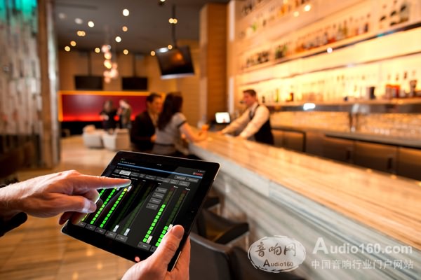通過 iPad® 或 iPhone® 上的應用程序實現對系統音頻設置及音量的無線操控。用戶可以走到需要進行調整的區域,然后根據實際聽感對音源、混音以及輸出音量進行設置。同時也可選擇將操作設備固定在某個易于使用的位置。