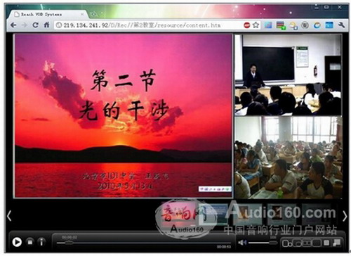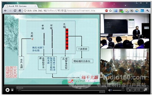 1)、圖像語音清晰流暢:視頻速率最高達4M,清晰度最高支持704X576(NearDVD),音頻采用MP3編碼方式(NearCD),可清晰再現教學實況。