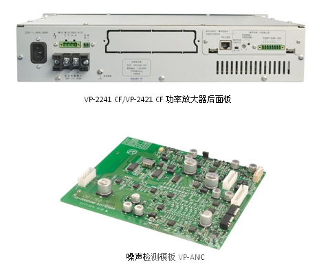 TOA新開發的功率放大器VP-2000 CF系列,由功率放大器VP-2064 CF(60W/4通道)、VP-2122 CF(120W/2通道)、VP-2241 CF(240W/1通道)、VP-2421 CF(420W/1通道)以及噪聲檢測模板VP-ANC組成。