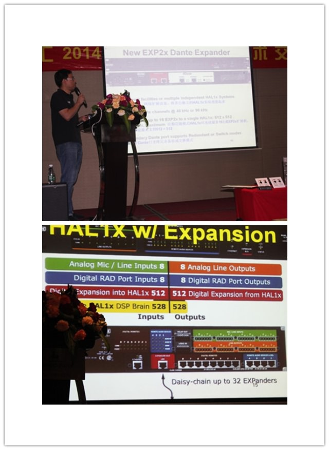 當(dāng)天的發(fā)布會(huì)劉博首先介紹了此次發(fā)布會(huì)的主打產(chǎn)品的功能與應(yīng)用。HAL系列產(chǎn)品包括HAL4、HAL3s、HAL2三款DSP單機(jī)處理器,HAL1x則是可擴(kuò)展為512×512的DSP主機(jī)。另外,還包括EXP1x遙控音頻擴(kuò)展器、EXP3x分區(qū)輸出擴(kuò)展器、EXP5x輸入擴(kuò)展器、EXP7x回聲消除(AEC)擴(kuò)展器等。這些設(shè)備可廣泛用于零售店、餐館的背景音樂、尋呼系統(tǒng);禮堂、教堂、劇院、體育場館;中小會(huì)議室、需要組合、拆分的房間,方便劃分出多種功能區(qū)域等應(yīng)用。