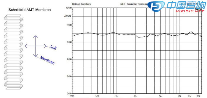 圖左為AMT高音喇叭在空氣中薄片狀振膜的移動方向。
