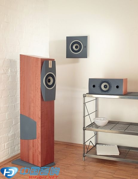 這對音箱是瑞士Selmoni設(shè)計的一款兩路低音反射式落地箱,型號定為“Lumina”,其中高音單元采用的是一個重1.7kg的AMT號角單元,中低音單元采用的是丹麥Scanspeak Revelator系列的18W(帶寬33Hz~20kHz,阻抗8Ω,xover頻率2.5kHz),音箱靈敏度可達85dB。