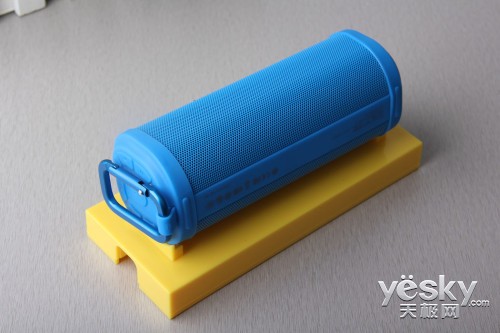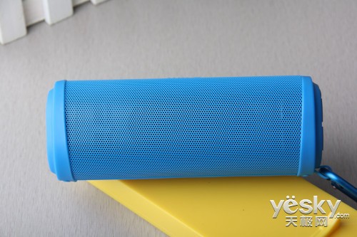 這款藍牙音箱采用了左右對稱的設計,但左右兩側的功能設計不同,不過,兩側都有塑膠皮套,可以保護好音箱。較軟的硅膠包裹不僅防摔,手感上也非常出色。