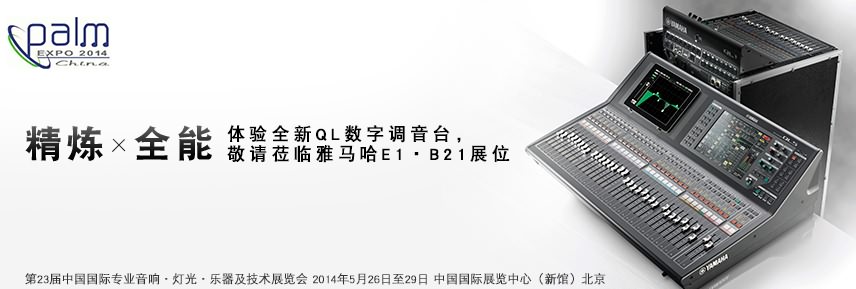 2014年5月26日- 29日,雅馬哈將如約參加 PALM EXPO 2014 展會。在中國國際展覽中心新館的E1館,B21雅馬哈展區中,包擴全新QL系列數字調音臺、多功能混音功率放大器MA2030、PA2030以及NUAGE制作系統、CIS商用安裝解決方案箱等眾多新品將呈現在觀眾面前!