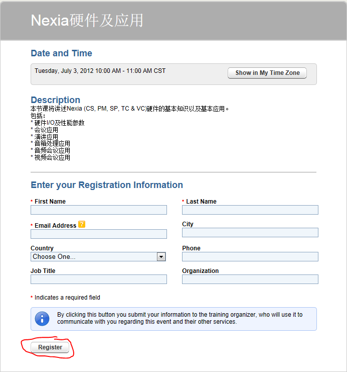 3.請(qǐng)?zhí)顚?xiě)注冊(cè)表如下圖所示。填寫(xiě)完成后,點(diǎn)擊“Join Training in Progress”