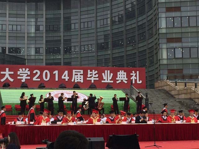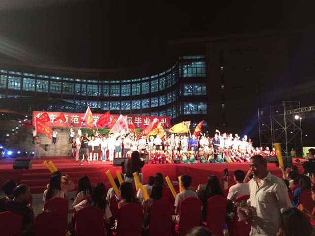 此次畢業典禮為華東師大首次露天舉辦,匯聚了全校各院系5000余名師生。畢業晚會于下午6點舉行,在星空燦爛的圖書館草坪,精心準備的各式歌舞陸次登場,新穎別致的真人秀“大廚去哪了”、包含真情的小品“夢想”、富蘊深意“夢想驛站”交接儀式等無不彰顯出華東師大人獨有的性格和魅力。