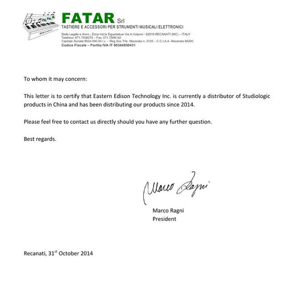 自新聞發布之日起,北京怡生飛揚科技發展有限公司(Eastern Edison Technology,Inc.)以下簡稱:怡生飛揚,正式取代廣州艾茉森電子有限公司成為Studiologic品牌在中國大陸地區的獨家總代理,并負責今后Studiologic品牌的市場開拓及銷售工作。可通過Studiologic官方網站經銷商一欄進行查詢。