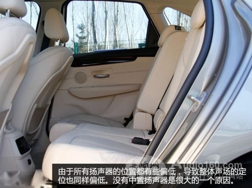我們在前文中說過,寶馬2系Active Tourer在后排只布置了一對中高音單元。這是也為什么其后排低音略顯不足的原因。而有一點要說的是,從揚聲器單元的質量上看,寶馬2系Active Tourer還是相當到位的,僅靠一對揚聲器,還在中音區域保持了不錯的表現。高音其實也是可圈可點,雖然沒有上揚的趨勢,但是貴在順滑。