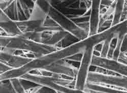 原始纖維直徑約10至15μm絲綢和馬尼拉麻.直徑減少到0.2到2.0μm毆打過程中由于混合允許紙與絲纖維混合填充的空白(約20至50μm)在馬尼拉麻纖維之間.(見下面的照片.)從振動吸收的角度來看,這個結(jié)構(gòu)是完全理想.