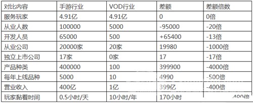 如果按照行業分類,大家都屬于文化部管理的娛樂行業,當前中國文化娛樂行業協會里面專門有游戲分會,也會有VOD分會,這兩類分會都是由科技公司組成的,也都服務于娛樂行業,服務的人數也相差無幾,為什么就有這么大的差別哪?