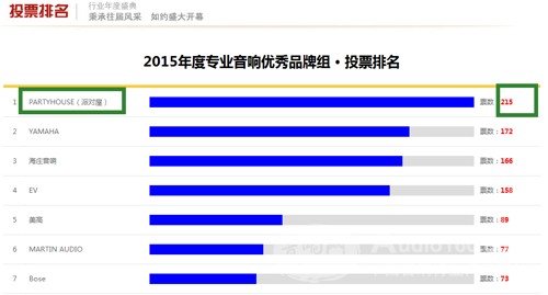 “2015年度音響行業(yè)十大優(yōu)秀品牌評選”網(wǎng)上投票正進行的如火如荼,眾多參選企業(yè)及支持者可通過網(wǎng)絡進行自主投票,采取一個IP一天只能投一票的網(wǎng)絡投票規(guī)則,評選出行業(yè)優(yōu)秀品牌。自11月14日開始投票以來,廈門市派對屋電子有限公司以下簡稱“PARTYHOUSE派對屋” :以215票占據(jù)上風,一路領(lǐng)先!