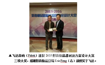 飛達(dá)音響(Fidek)連獲2015影音極品器材及方案設(shè)計(jì)大賞三項(xiàng)大獎(jiǎng)
