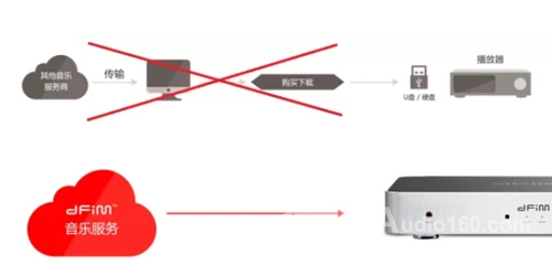 睿妙除了具備眾多DAC具有的S/PDIF輸入解碼、USB外接硬盤音樂解碼、手機(jī)多屏互動(dòng)功能之外,最令人驚喜的是其直接聯(lián)網(wǎng)到dFiM音樂平臺(tái),下載Hi-Res Audio原聲唱片的功能。