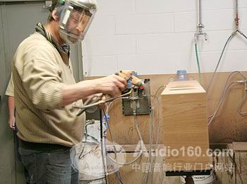 ⑴表面軟性原子灰處理。細膩柔軟原子灰可保證音箱油漆受磕碰時不易脫落;