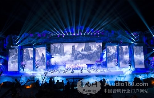 觀眾區兩側各布置3只EVH-1152D/96-PIB號筒式兩分頻同軸全頻揚聲器作為環繞效果揚聲器,主要用于演出中的雷鳴、狂風和車船移動等效果,使整個演出場面更加豐富、生動,配合燈光、視頻以及表演形式,讓觀眾身臨其境。