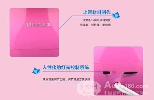 音箱效果 3D環繞 音箱箱體材質 工程塑料 顏色 活力黃,浪漫粉,生機綠,純凈白