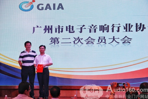 中國電子音響行業協會副秘書長黃桅、廣州市工信委工業處黃志勇調研員為第二屆理事單位授牌。