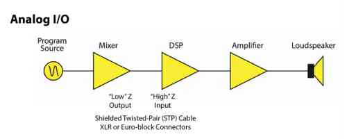 模擬信號的電壓會隨著時間發生變化,電平范圍寬達100 dB以上。可依據電壓大小對信號進行分類(例如,話筒電平,線路電平,揚聲器電平)。而且信號是單向流動的——只能從輸出流至輸入。電纜電容決定電纜長度,在某些應用場景,電纜長度可達300m。