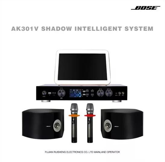 AK301V產品由臺灣RS301V功放、北京陽光KFUN-A15(s)點歌機、BOSE301V音箱和一對無線麥克風組成,堪稱四合一精品。