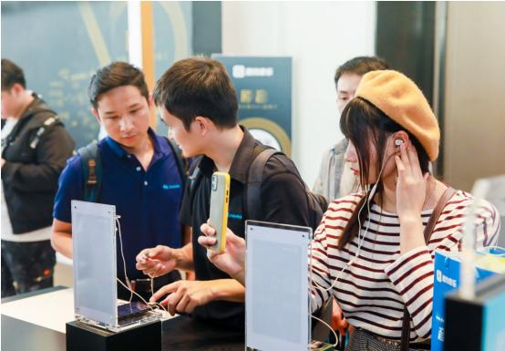 體驗者正在品鑒酷狗電音圈鐵耳機