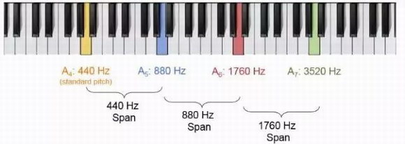 如上圖所示,所有垂直的塊是一個(gè)倍頻程。