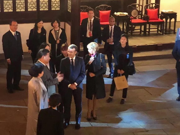 11月5日晚上,主席和其夫人在上海豫園會見法國總統馬克龍和夫人布麗吉特,主席對馬克龍總統再次訪華并第一次來上海表示歡迎。