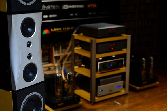 在供電方面,器材所使用的電源經(jīng)過加拿大Torus Power AVR16電源處理器取電,而電源線則全部選擇德國HMS、丹麥Argento、意大利A.R.T.等品牌的頂級型號,信號線分別有丹麥Zensati、Kimber kable金寶、HMS等等,喇叭線則根據(jù)不同的音箱作搭配,包括了德國HMS Gran Finale Jubilee、Kimber kable金寶最新的碳纖維系列等等