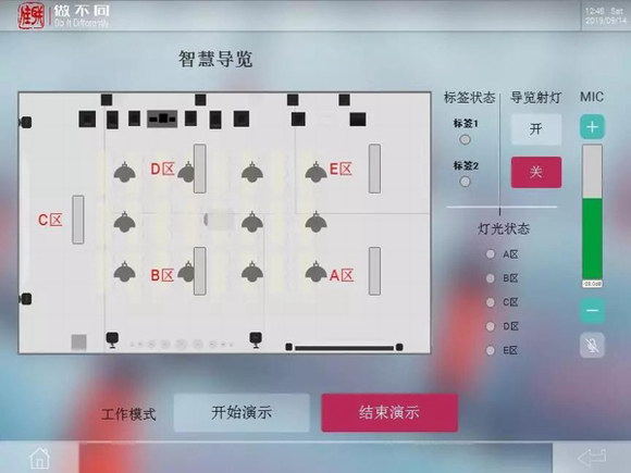 當我走到體驗區門口,就聽到一首悠揚的音樂傳入耳中,小編心想這是誰的手機在放歌嗎?當我走近才發現原來是體驗區播放的背景音樂,在我拿著麥克風走進體驗區時,自動觸發了導覽系統,不僅附近燈光自動點亮了,背景音樂也隨之暫停了,轉而開始播放歡迎內容。如此“黑科技”的表現著實讓我眼前一亮,講解員告訴我,這是室內感知系統的功勞,你再到處走走看...