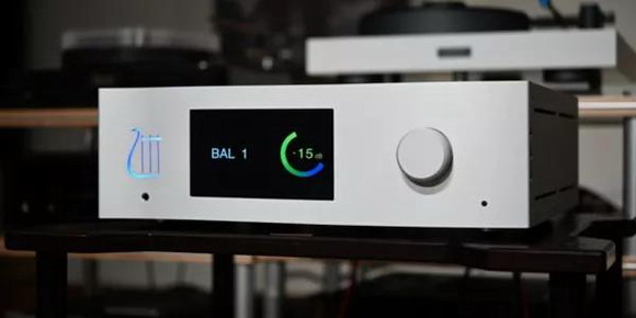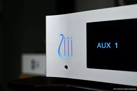 這次試聽的是Absolute合并擴(kuò)大機(jī),新一代的Orpheus前方都配有一個(gè)彩色顯示屏幕,在右方的音量旋鈕兼有電源開關(guān)的功能,左方天琴的Logo在待機(jī)模式下是紅色,開啟使用時(shí)會(huì)變?yōu)樗{(lán)色,Logo下方有一個(gè)耳機(jī)輸出。