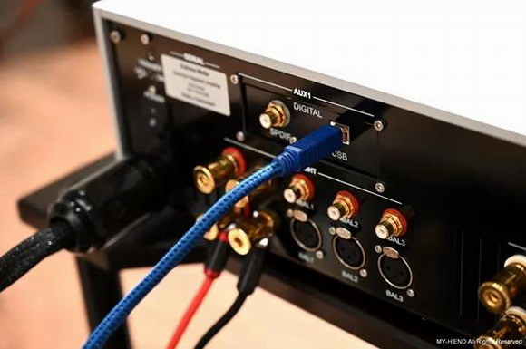 背后共有3組平衡XLR與3組RCA輸入,音箱輸出有兩組,另外器材后方預(yù)留兩個(gè)位置給選配DAC模塊或唱放模塊之用,這臺(tái)就選有DAC模塊,所以可以看到有USB DAC與同軸輸入,也就是說只要接上數(shù)字訊源或是計(jì)算機(jī)就能播放聆聽了。