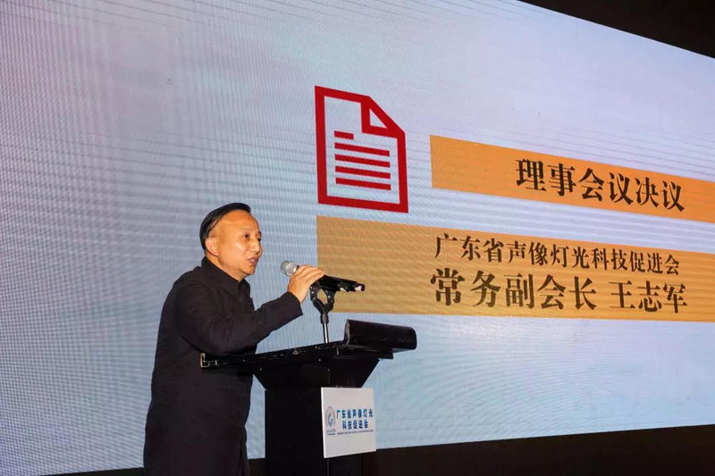 廣東演藝設備行業商會會長王銳祥上臺致辭,王會長對彭妙顏教授及科促會各位專家教授對行業給予的幫助表達了感謝,并希望在接下來的日子里兩個協會能夠加深合作,共同推動行業發展。