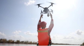 由于部分地區(qū)完全被洪水包圍,成為一座孤島,中國救援隊在貝拉機場乘坐一架直升機,沿布奇入海口逆風飛行,使用無人機與應急指揮系統(tǒng)對接,對布奇河沿岸受災情況進行偵查評估,拍攝大量視頻資料回傳到指揮點,以供指揮部掌握河道具體方位、水文情況以及河道兩側(cè)村落情況,并對應作出指揮決策。