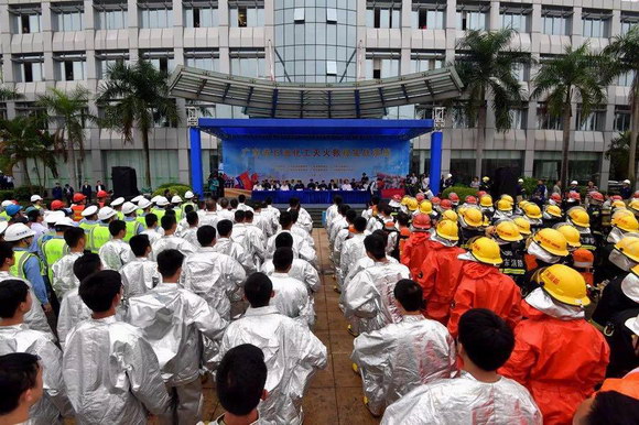 本次演練時長約一小時,調集廣州市消防支隊6個大隊共45輛消防車、2艘消防船到場救援,佛山、東莞支隊和總隊直屬特勤大隊共3個石油化工編隊和總隊全勤指揮部增援,應急、公安、環(huán)保、衛(wèi)生、氣象、水務、電力等相關聯(lián)動單位參與演練。
