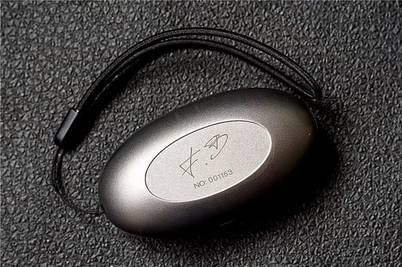 和市售TWS真無線藍牙耳機一樣,TWS600也同樣采用耳機+充電盒設計,保護盒為橢圓形蛋型設計,銀灰配色表面經過磨砂質感,拿捏在手上非常輕巧,充電盒背面還印有一組唯一的編號以及簽名,一條掛繩設計讓TWS600在攜帶性上要遠比其它同類耳機方便。