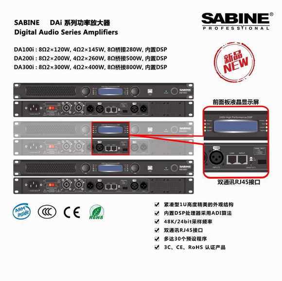 ●內置DSP處理器采用ADI算法、48K/24bit 采樣頻率