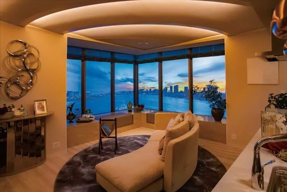 ▲“晴海FLAG展館”首次引進的“VIRTUAL STAGE MIERVA眺望型”。運用最新技術,在樣板房內再現眺望圖像。可以體驗實際在客廳的現場感。