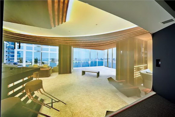 此外,還讓其與松下生活方案公司的照明設備聯動,更加凸顯各時間的風景變化。“三面環海的‘晴海FLAG’擁有堪稱東京條件最好的優美景色。過去存在著建筑物已經完工,客戶卻不能親眼目睹其景色的矛盾,采用這套系統可以再現”(高木先生)。