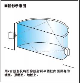 在寬闊的都市土地上新開發的“晴海FLAG”。可以模擬體驗完成后的街道和居住環境的展區是VIRTUAL STAGE MIERVA環球型。在這里,采用直徑5.2m、高2.5m的半圓柱曲面屏幕和2臺高亮度激光投影機,在上下左右的所有方向上實現最大約180度的接近人類視角的廣視角VR投影。