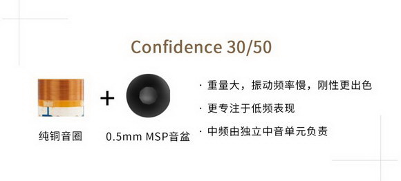 正因如此,Confidence 20的低音單元使用了0.4mm 厚的MSP音盆,Confidence 30/50則使用了0.5mm MSP音盆,Confidence 60低音的音盆厚度達(dá)到了1mm。厚度越薄,重量越輕,音盆振動(dòng)頻率就越快,中頻響應(yīng)也更好。反之,厚度越大,重量越大,則音盆振動(dòng)頻率越慢,低頻響應(yīng)也更出色,意味著此時(shí)單元更專注于低頻的表現(xiàn)。