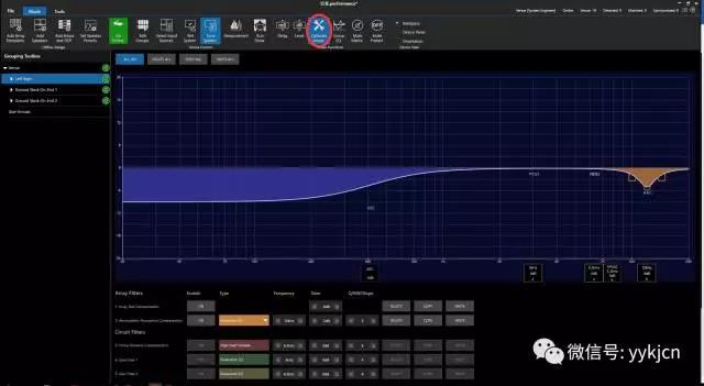 除校準EQ之外,軟件另外提供12段分組參量EQ供工程師調整系統使用,包括常用的PEQ、Low Shelf、High Shelf、Low Pass 、High Pass 等。