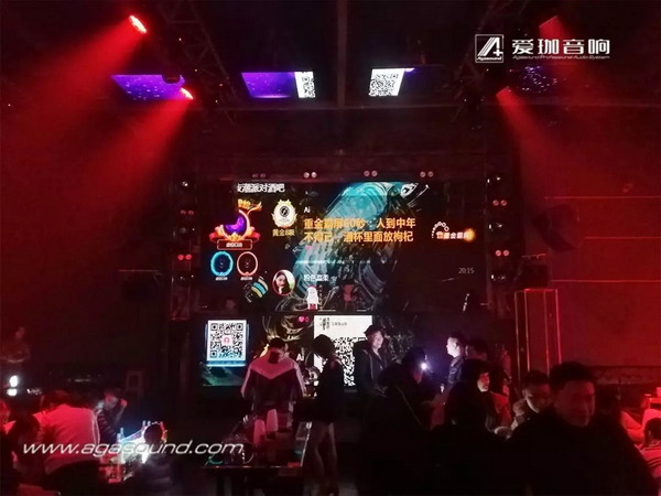 夜潮酒吧屬于慢搖吧,也就是我們平時所說的“嗨吧”。要想滿足現場的嗨場效果,高聲壓級、強勁低頻是必不可少的。通過多輪磋商,夜潮酒吧最終選用愛珈音響Agasound品牌。愛珈音響擴聲系統搭建工程師推薦其主擴選擇Aline系列線陣列音箱,輔助選擇AT系列,搭配以AS系列超低頻音箱。