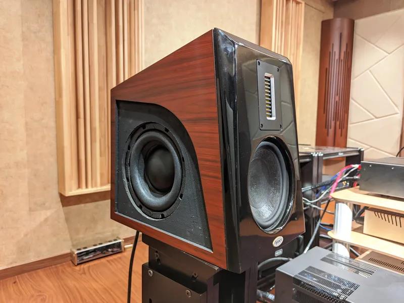 3路3單元+2個無源輻射器設計,4英寸AMT高音單元,7.5英寸風琴邊錐盆,8英寸長沖程錐盆,箱體重達46斤重!更多亮點由昌業音響版主JP為燒友詳細講解: