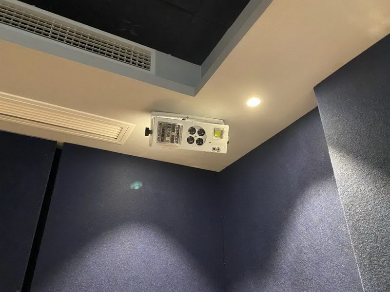 投影設(shè)備這里使用的富可視 IN119HDX高清投影機,在安裝的時候需要很好的保護好鏡面,以及隱藏好投影幕的線材,調(diào)試最佳,以求空間更美觀。