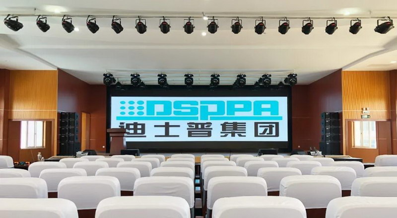 根據學校禮堂的面積和使用需求,迪士普將線陣列音箱作為主擴聲音箱,壁掛音箱作為輔助音箱進行區域補聲,在禮堂的不同區域,保證禮堂每個角落的聲場分布均勻,聲壓級足夠大,清晰度好。